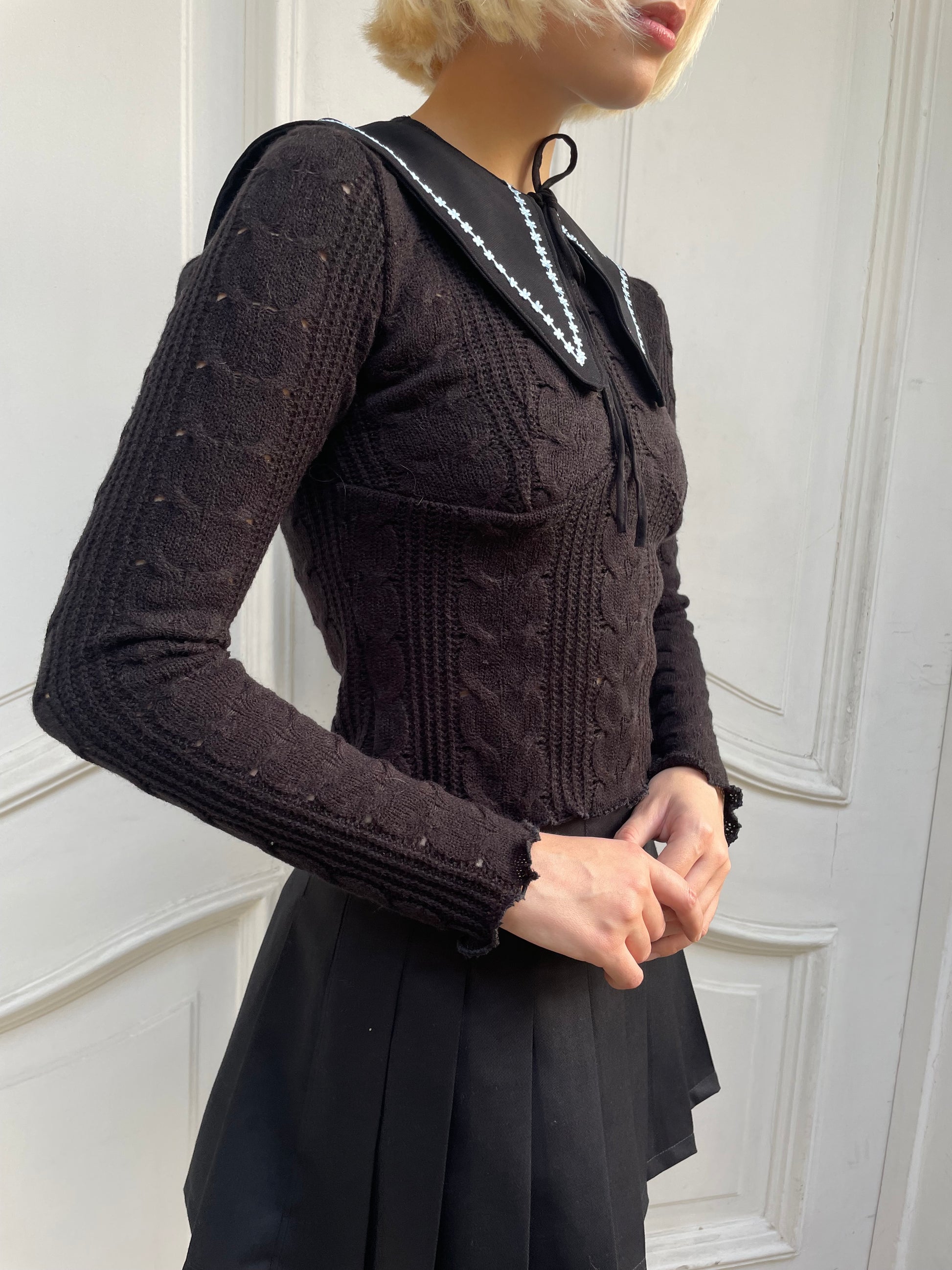 Top con corte en busto, confeccionado en tela de hilo, chaleco perfecto para elevar tus básicos de invierno.