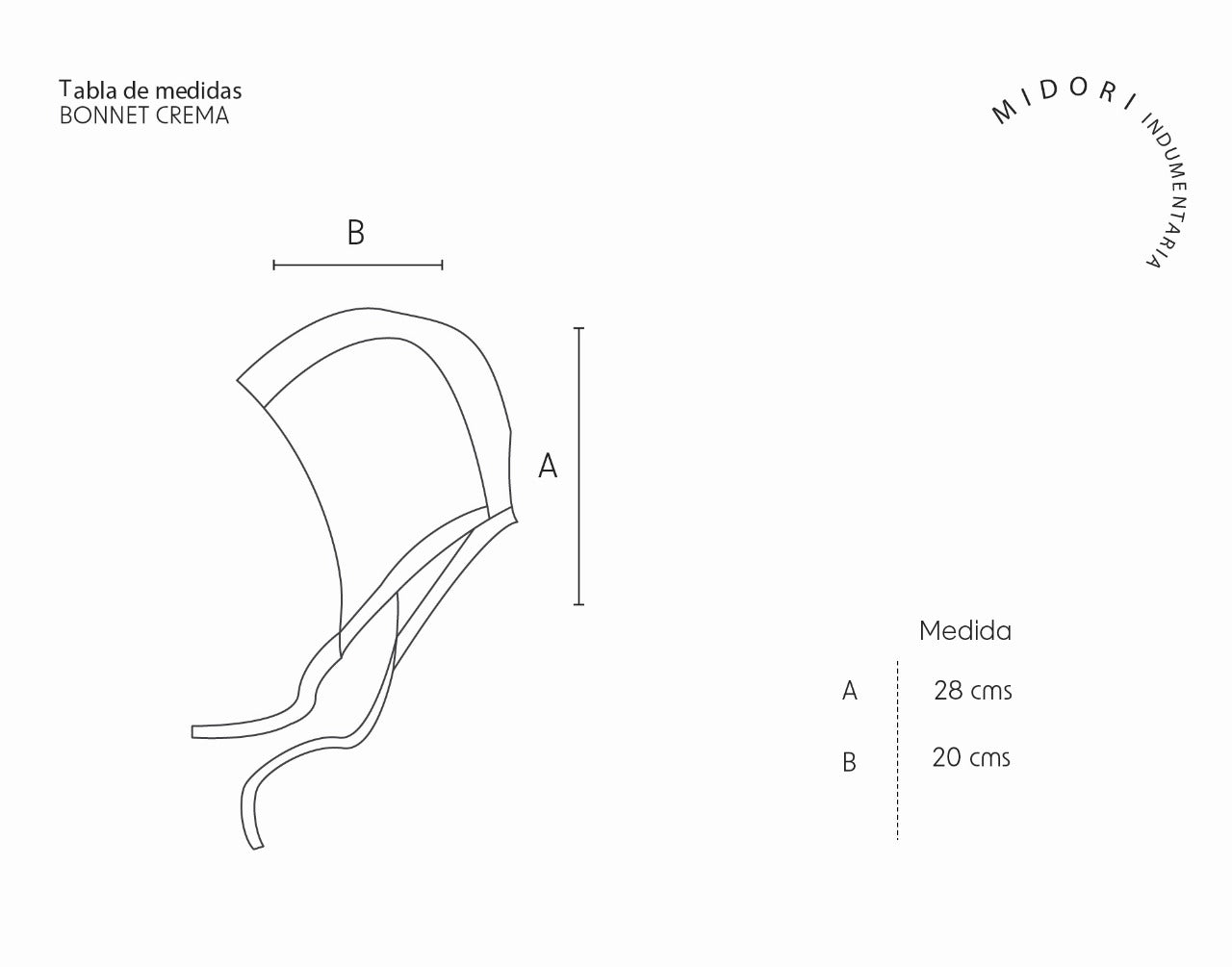 Bonnet confeccionado a partir de encaje, amarras largas.