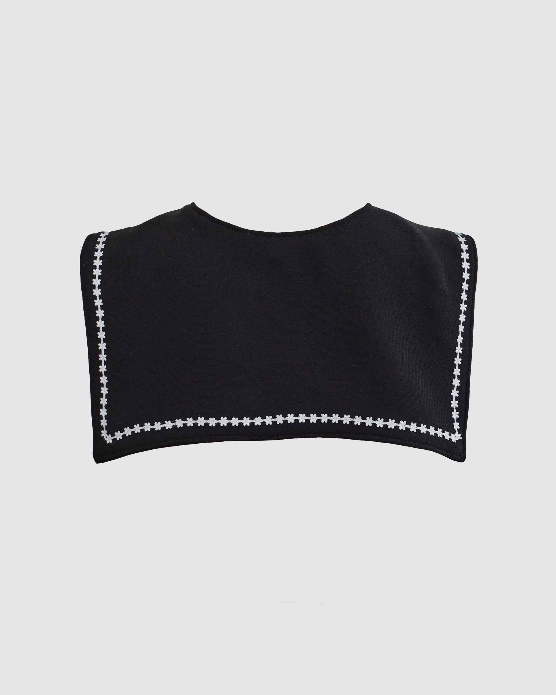 Cuello desmontable con aplicaciones de flores en color blanco.