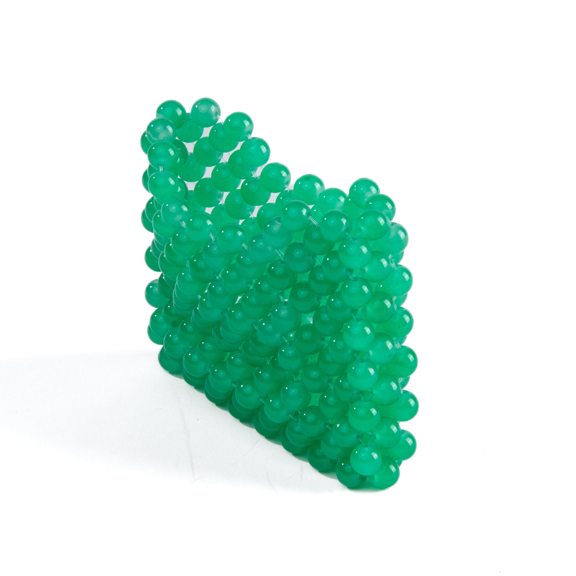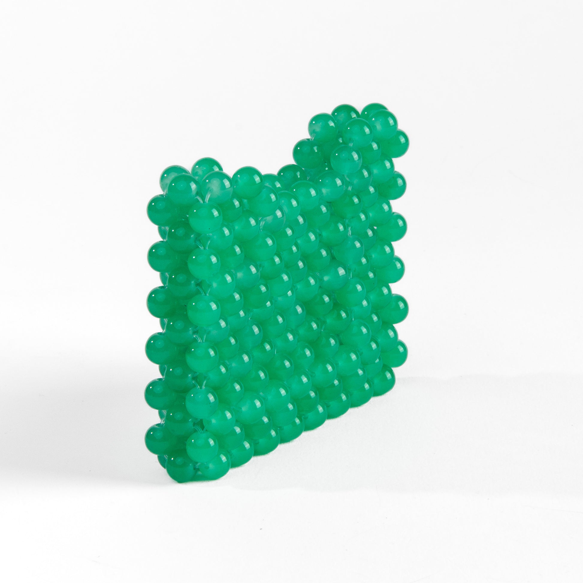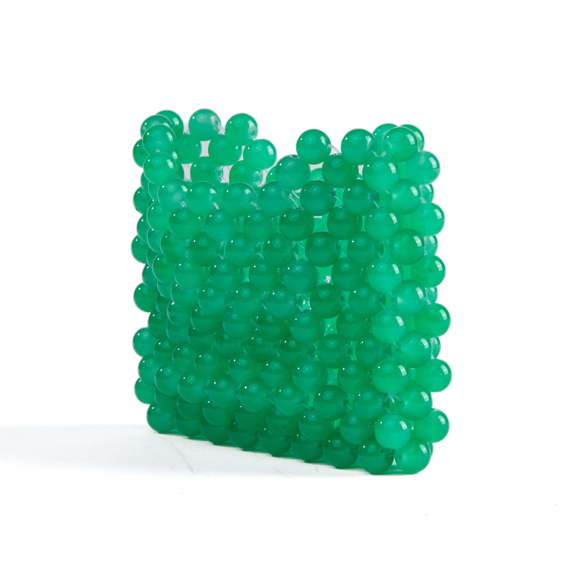Verde: Cuentas de vidrio Alto 8 cms Largo 8 cms Fuelle 2 cms.