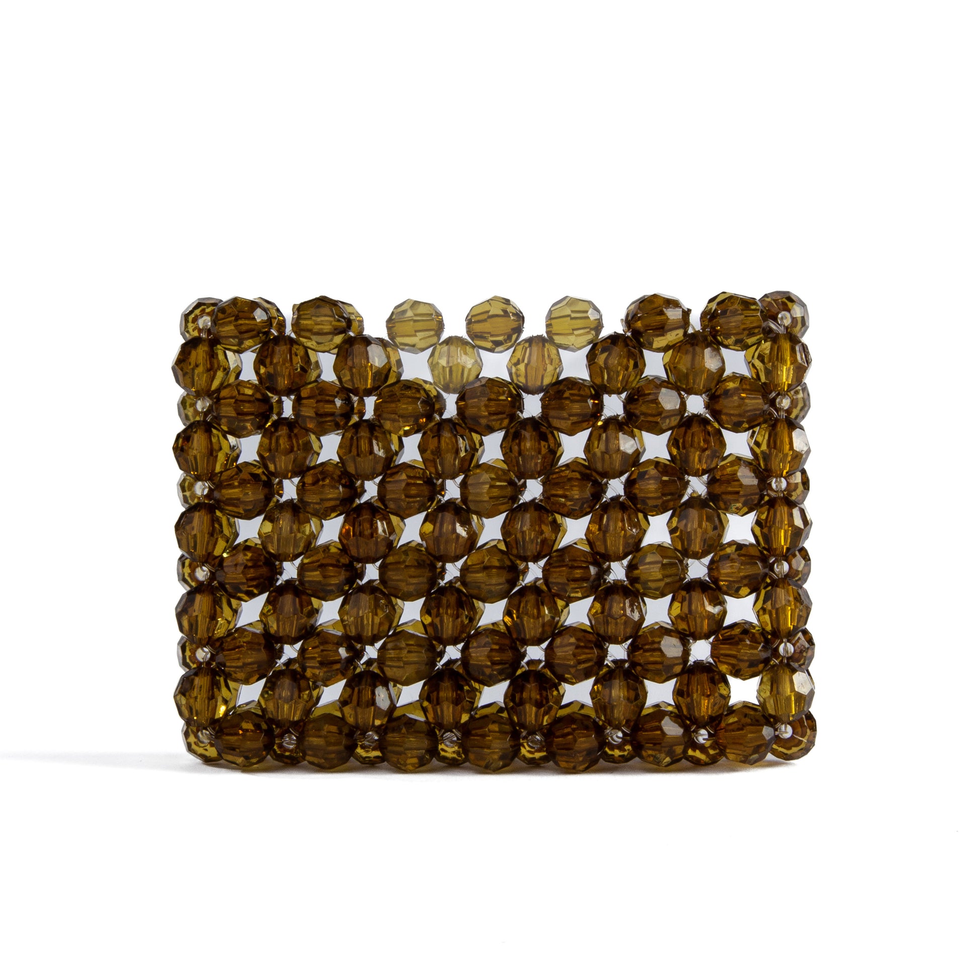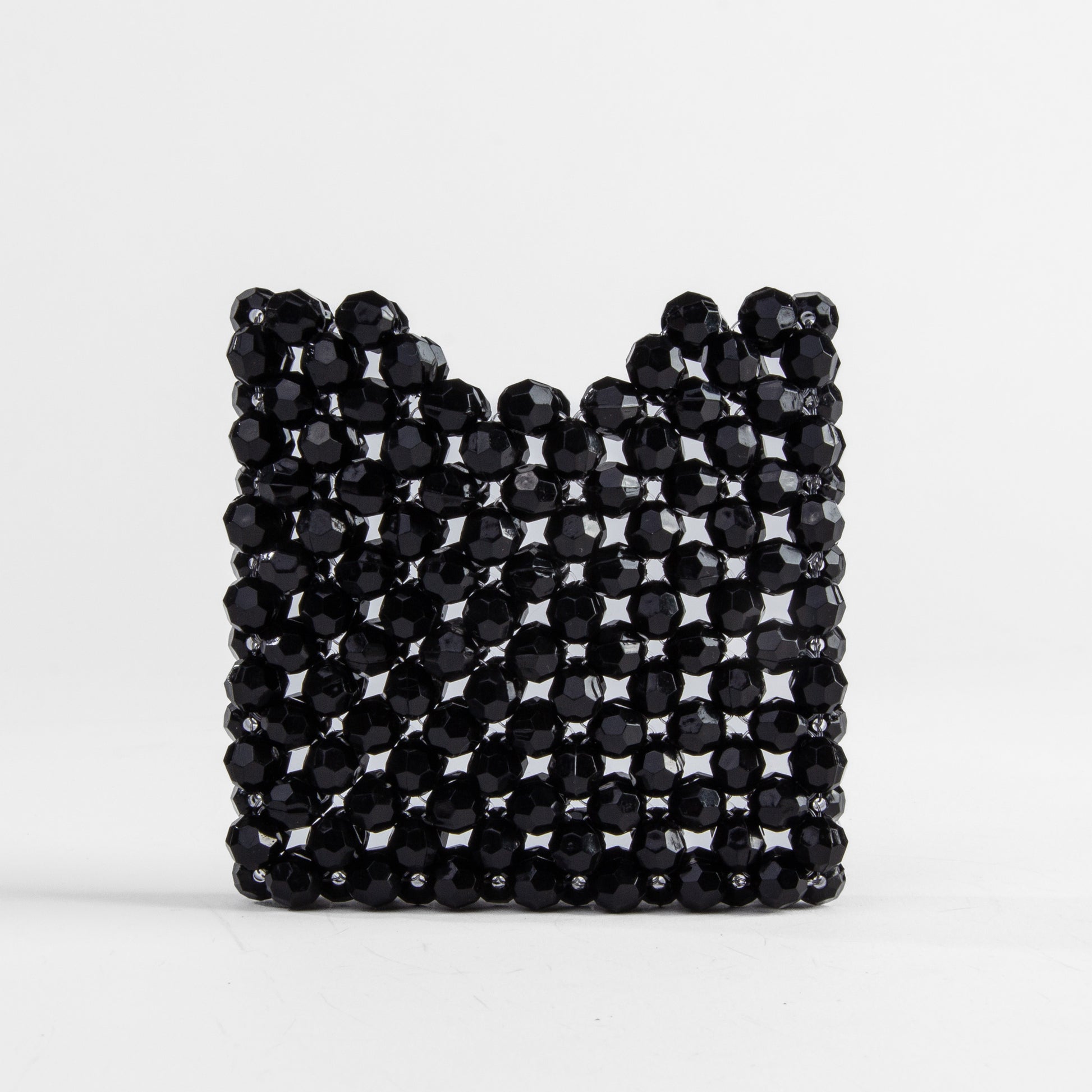 Tarjeteros tejidos a mano en cuentas acrílicas.