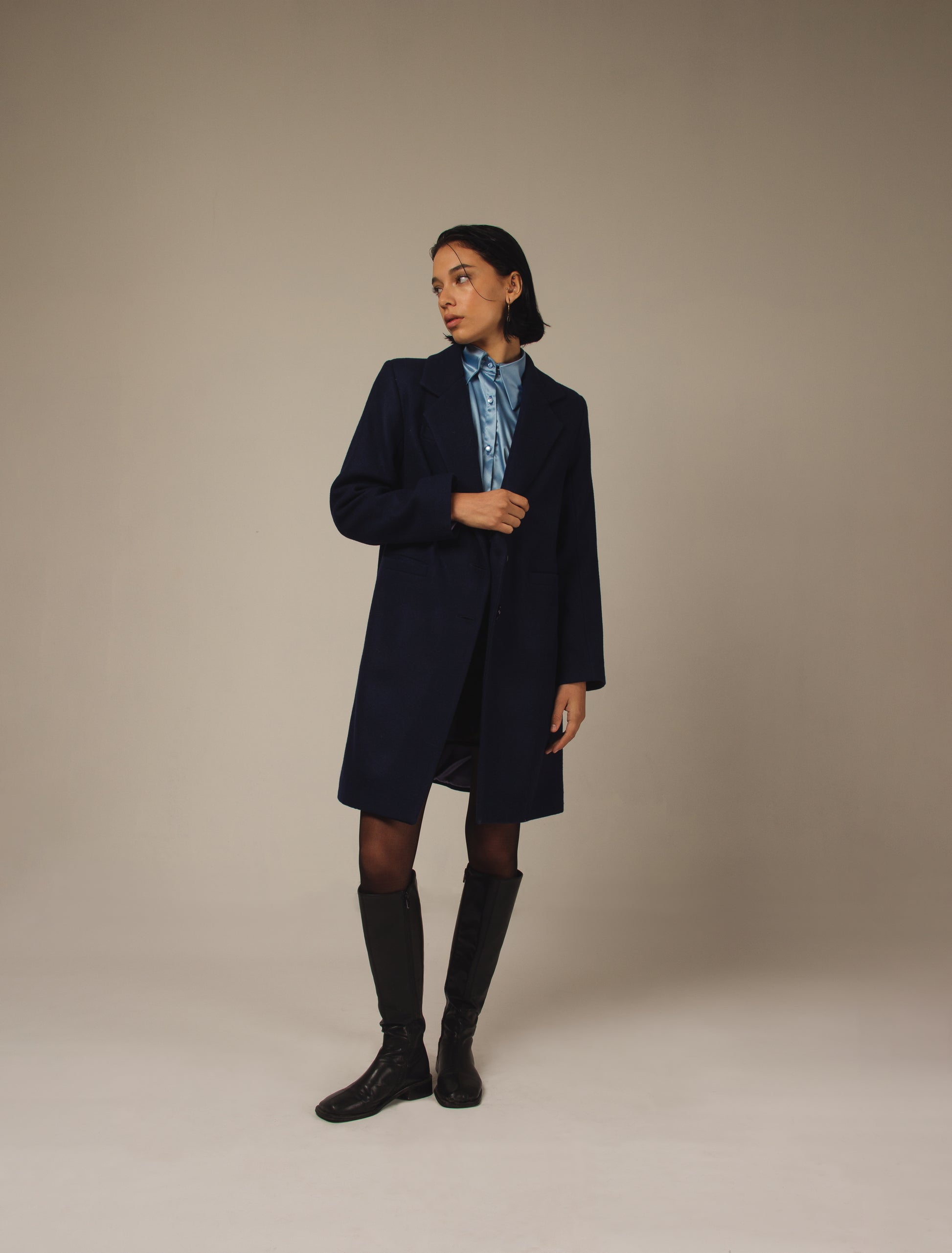Abrigo Marinero confeccionado en 100% lana de Oveja Bellavista de Tomé, para que disfrutes de una suave sensación al tacto y la resistencia de una de las mejores fibras naturales. Corte oversize para mayor comodidad al llevarlo con otras prendas, completamente forrado en su interior.