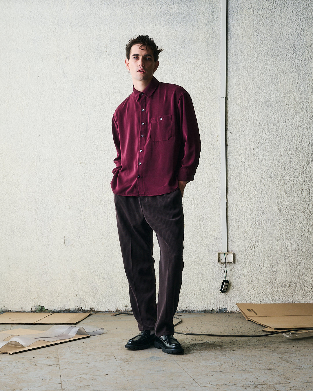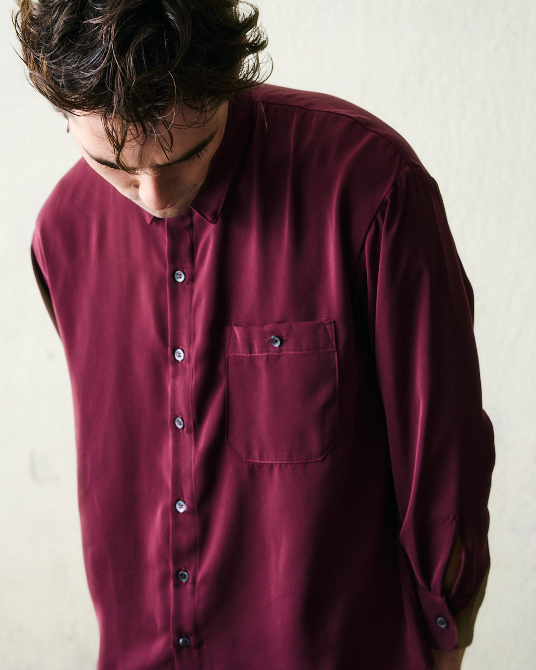 Camisa confeccionada en viscosa color burdeo con una leve terminación satinada. Unidades limitadas. Solo 4 en stock.