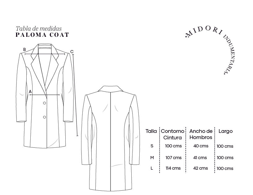 Abrigo Paloma confeccionado en 100% lana de Oveja Bellavista de Tomé, para que disfrutes de una suave sensación al tacto y la resistencia de una de las mejores fibras naturales. Corte entallado, completamente forrado en su interior.