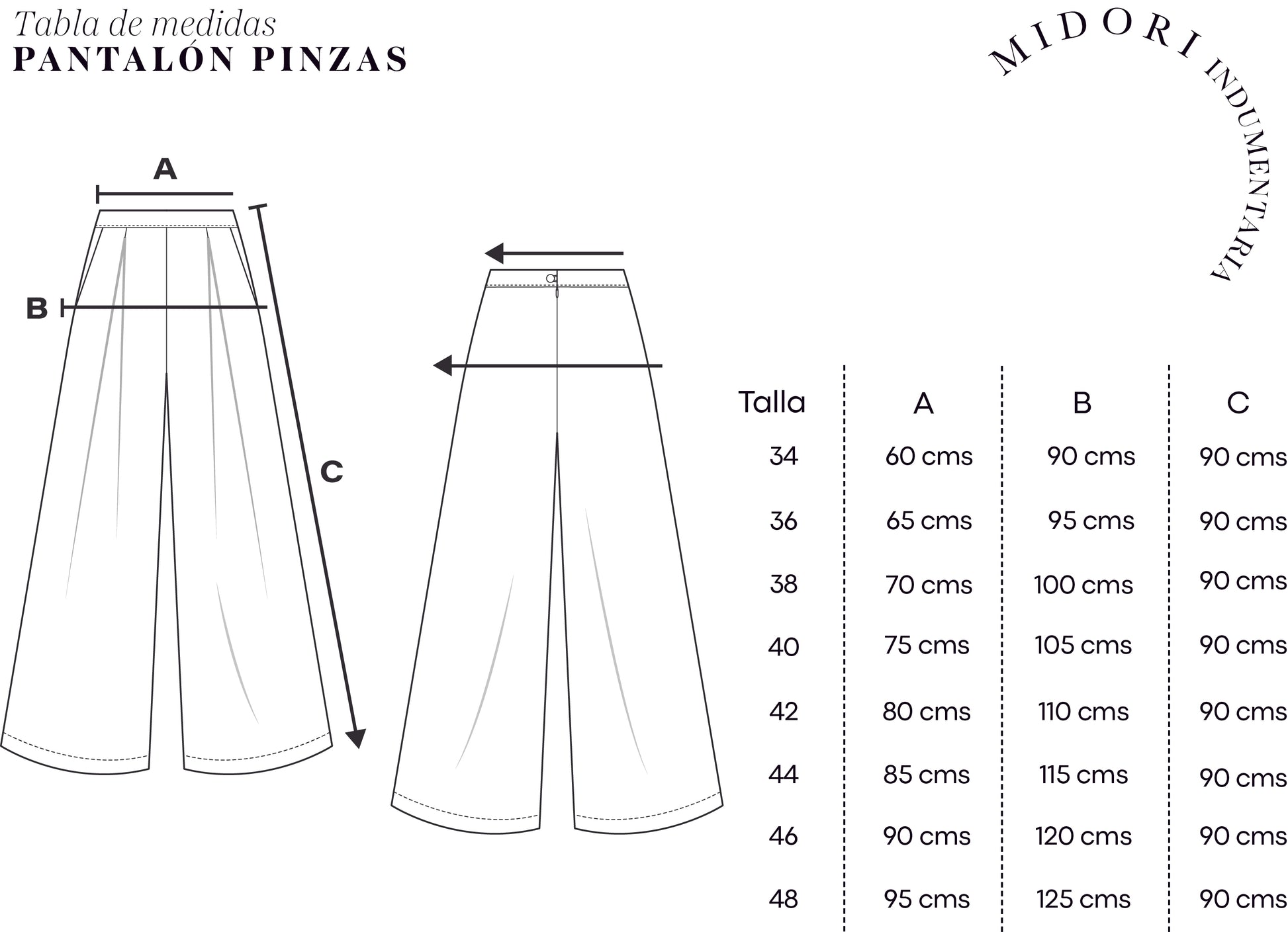 Modelo de pantalón palazzo con pinzas en su delantero y bolsillos.